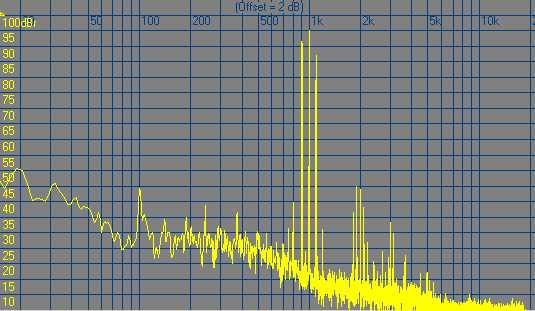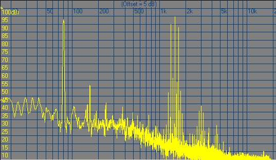 Full amplitude 1kHz + half amplitude 900Hz + half amplitude 1100Hz:
