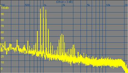 Full amplitude 1kHz + half amplitude 900Hz + half amplitude 1100Hz: