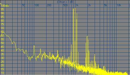 Full amplitude 1kHz + half amplitude 900Hz + half amplitude 1100Hz: