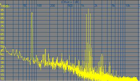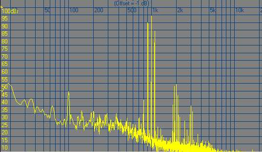 Full amplitude 1kHz + half amplitude 900Hz + half amplitude 1100Hz: