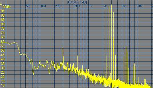 Full amplitude 3kHz + half amplitude 2700Hz + half amplitude 3300Hz: