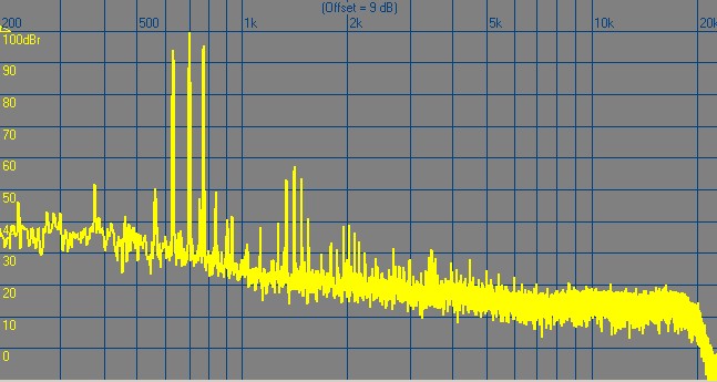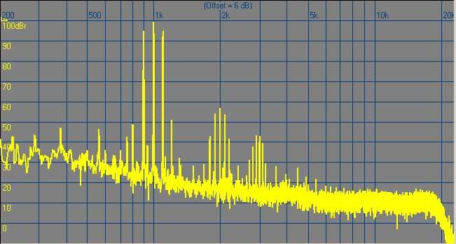 Full amplitude 1kHz + half amplitude 900Hz + half amplitude 1100Hz: