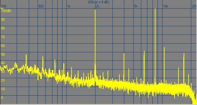 Full amplitude 2kHz + half amplitude 1800Hz + half amplitude 2200Hz: