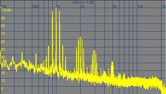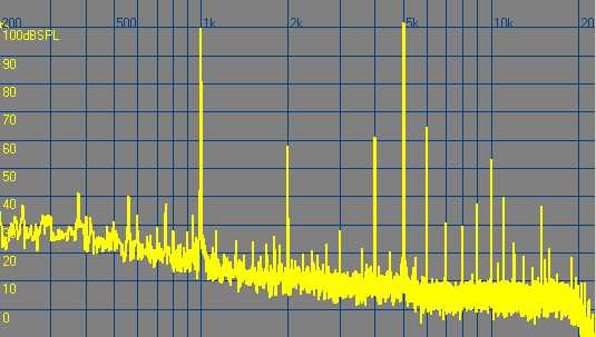 Full amplitude 1kHz + half amplitude 900Hz + half amplitude 1100Hz: