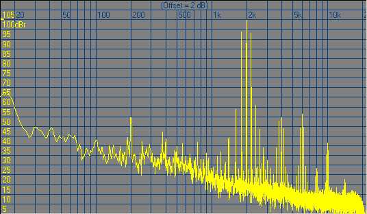 Full amplitude 2kHz + half amplitude 1800Hz + half amplitude 2200Hz: