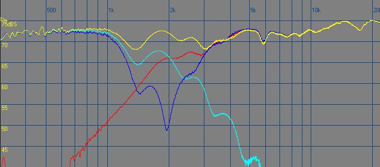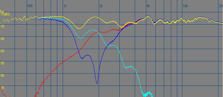 System, reverse-null, tweeter and woofer responses with North D25-06S. The crossover frequency is at 1.9Khz
